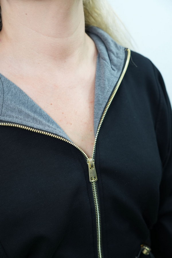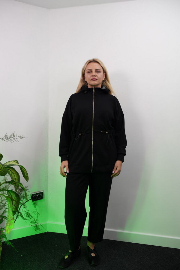 Siyah Fermuarlı Kapişonlu Takım